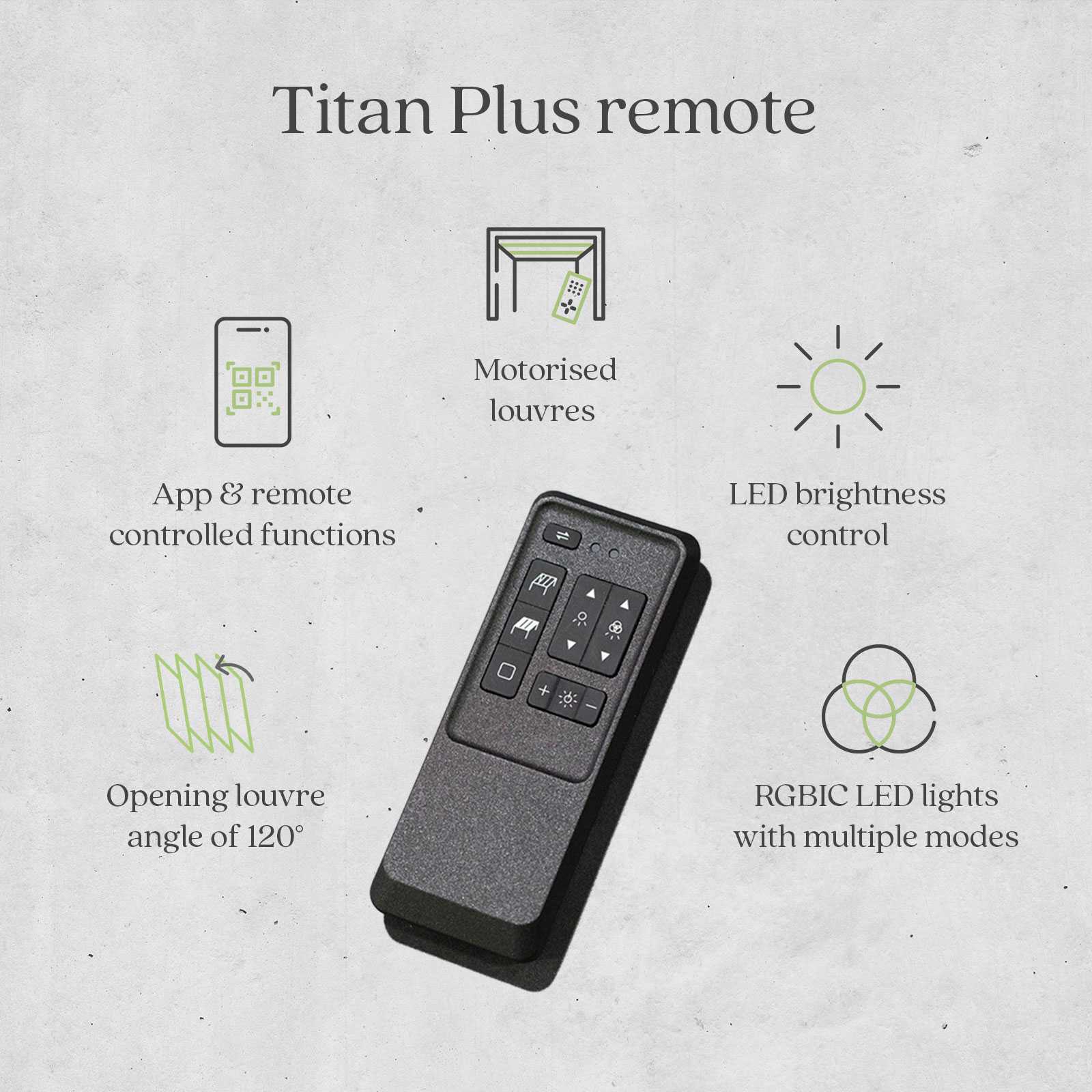 Control the lights and louvres with your voice via Alexa or Google Assistant (feature update coming soon). It’s all part of the Titan Plus’ mission to deliver the most seamless outdoor experience possible.