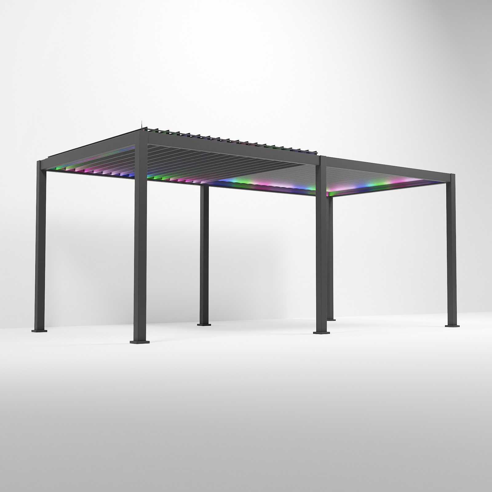 Titan Plus Aluminium Pergola – 2025 Model with Smart LED Lighting & Motorised Roof Louvres – Slate Grey Finish